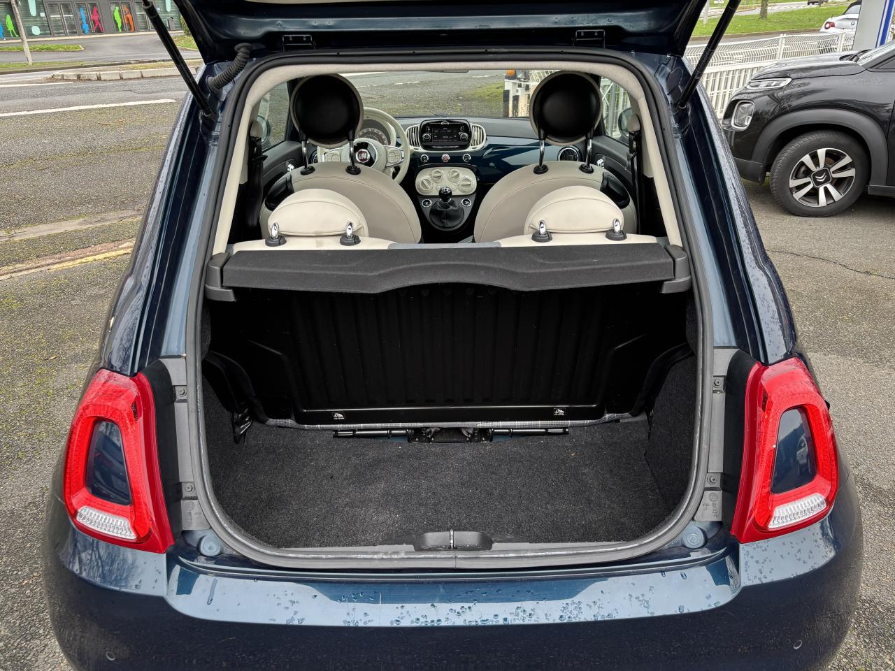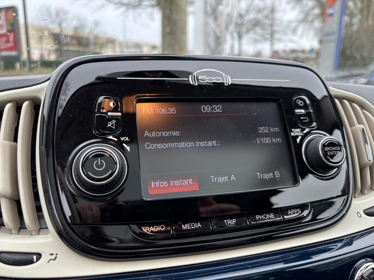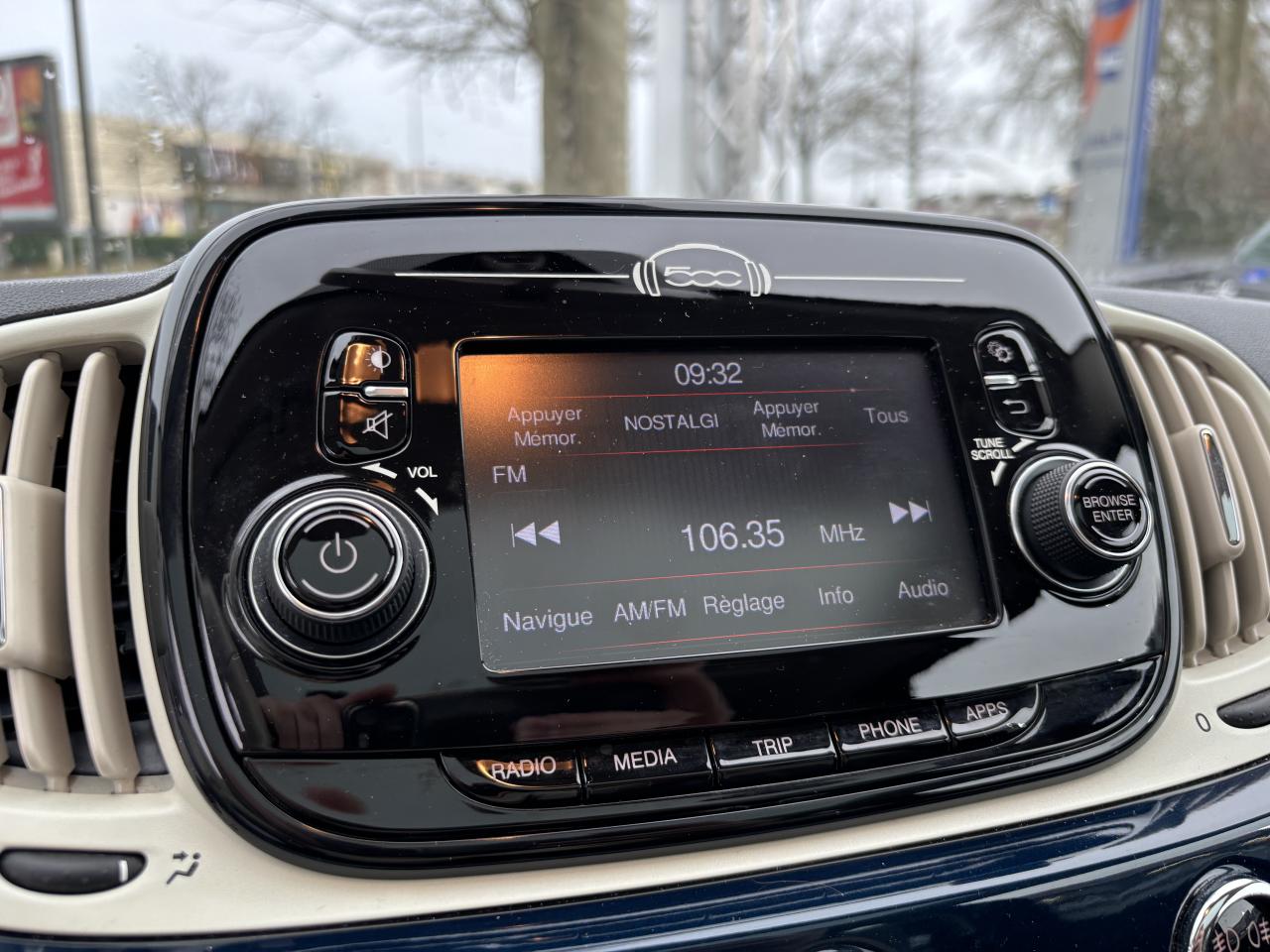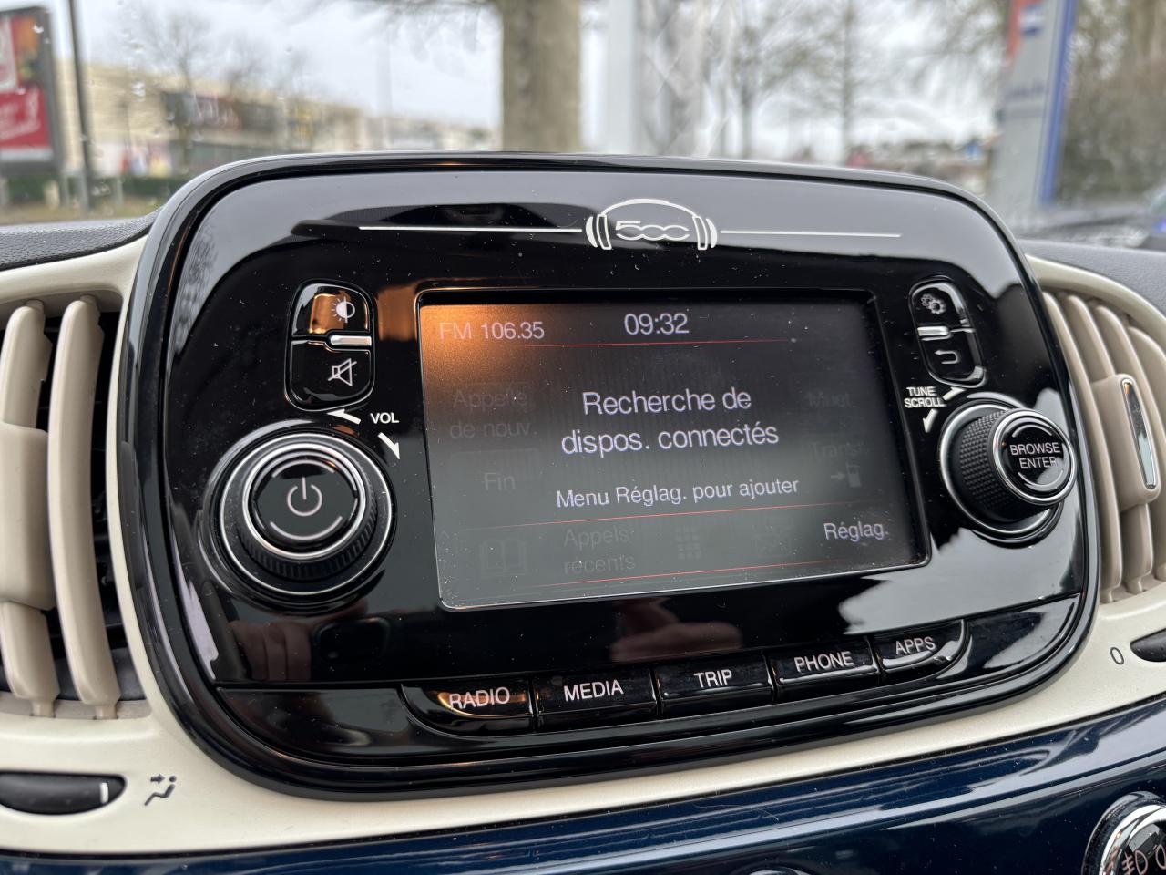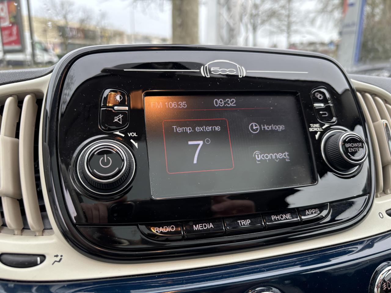 Air conditionné avec filtre à pollenCombiné de bord à affichage numérique TFT 7''Direction assistée Dualdrive avec fonction"City"Feux de jour à LEDJantes alliage 15” New LoungeLimiteur de vitesseRégulateur de vitesseRétroviseurs extérieurs réglables électriquement et dégivrants avec sonde de températureRadar de reculToit vitré panoramique fixe avec pare-soleilUconnect Radio 5" LIVE (Dual Tuner/USB/AUX/Bluetooth)Vitres avant électriquesVolant Gainé de cuir avec commandes audio